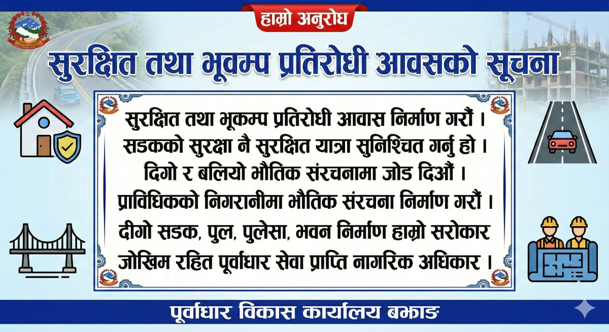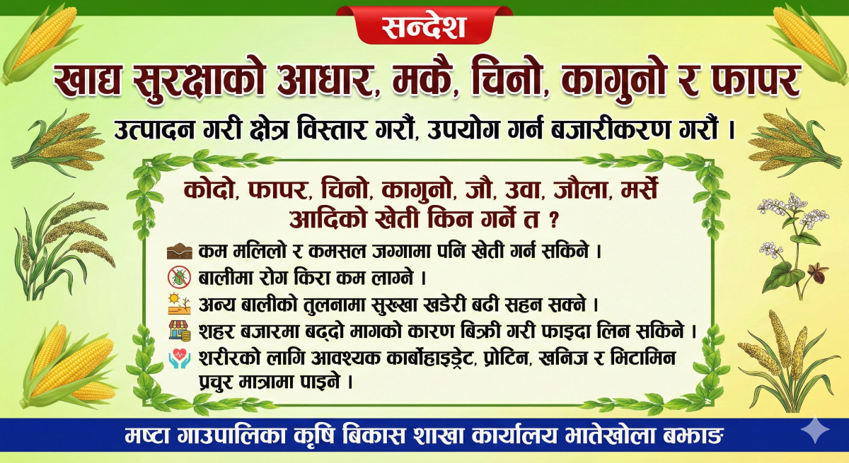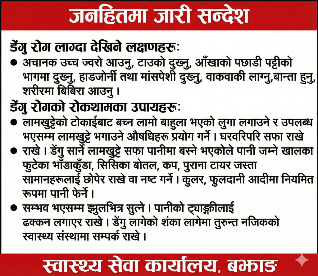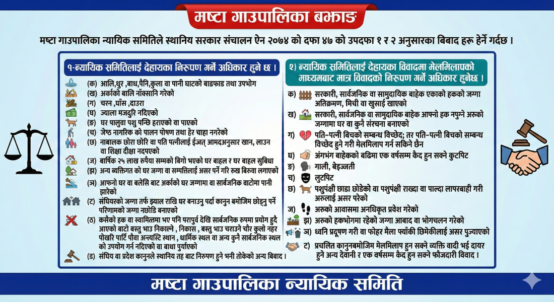 मष्टा गाउँपालिकाको सार्वजनिक सुनुवाइ कार्यक्रम उत्साहपूर्वक सम्पन्न बझाङ, मष्टा – माया कुमारि ताडि मष्टा गाउँपालिकाले आर्थिक वर्ष २०८२/०८३ को सार्वजनिक सुनुवाइ कार्यक्रम भव्य रूपमा सम्पन्न…